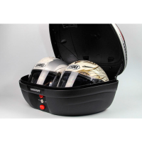 El baúl para moto S48 es de gran capacidad con suficiente espacio como para alojar dos cascos integrales en su interior por lo que resulta perfectamente adecuada para realizar viajes largos o rutas en compañia. Recuerda que aunque se incluye una parrilla universal para su instalación es posible que si tu moto no lleva portaequipajes necesites soportes adicionales; en tal caso consúltanos.