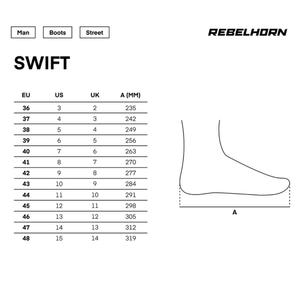 Rebelhorn Swift, botas de motoc para la ciudad, ligeras, cómodas y bien ventiladas. Destacan por su diseño deportivo y atención al detalle. Equipadas con un eficaz sistema de ventilación y perfectas para el uso diario, especialmente en días cálidos.