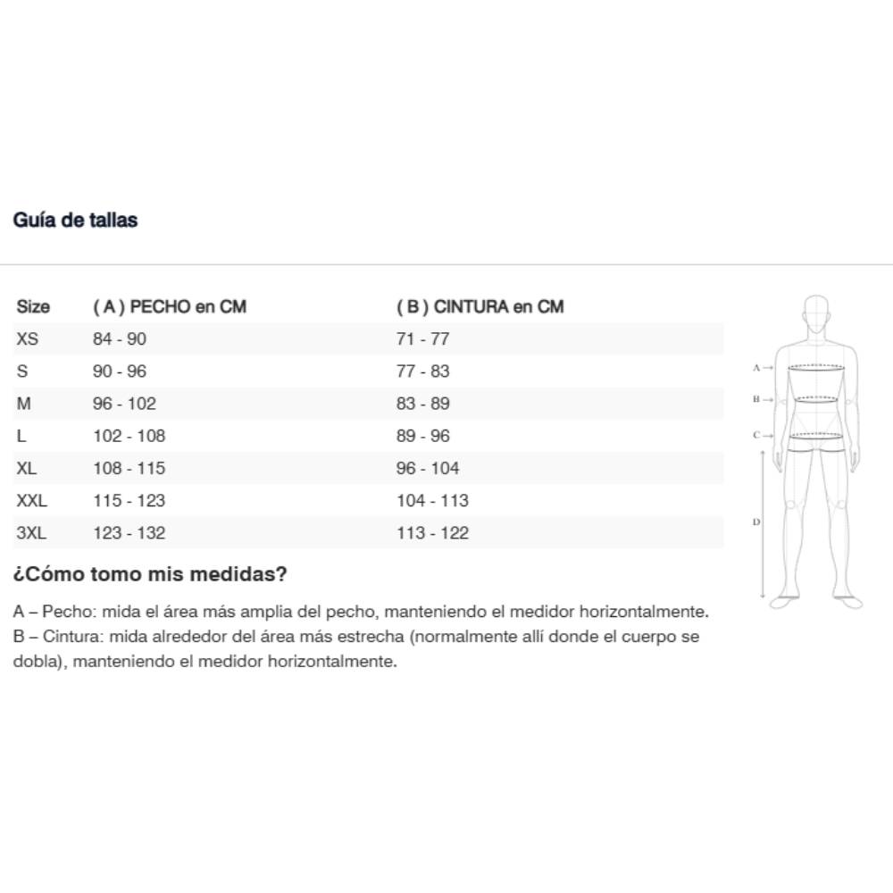 - Ajustes en cintura, puños y parte superior del brazo.