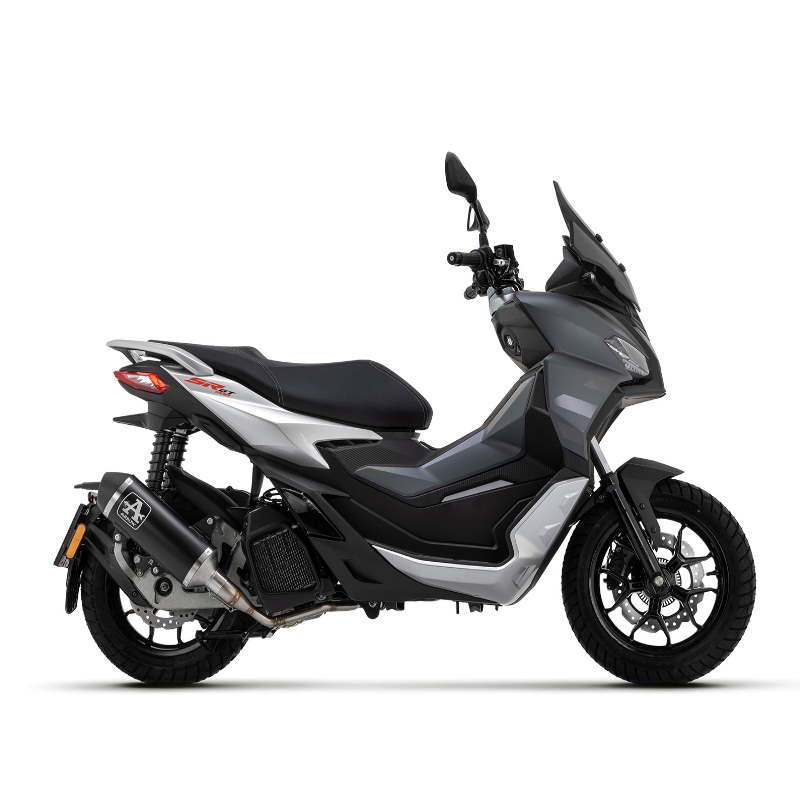 Escape completo Arrow tipo Urban en aluminio negro para su montaje en Aprilia SR 125 / 200 GT 2022+. Homologado Euro 5 sólo en combinación con catalizador adicional.