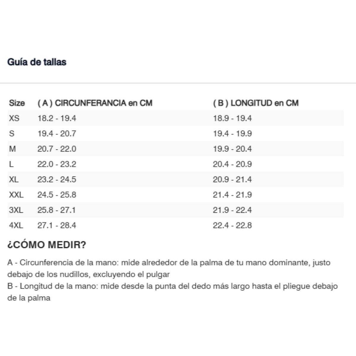 - Ajuste seguro: cierre de velcro y tejidos elásticos en dedos y pulgar.