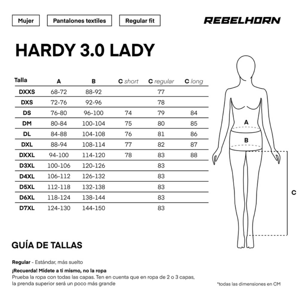 Pantalón de moto modelo Hardy 3.0 en color Gris-Negro y ajuste femenino, marca Rebelhorn. Tanto si hace frío como si esta lloviendo, estos son tus pantalones.